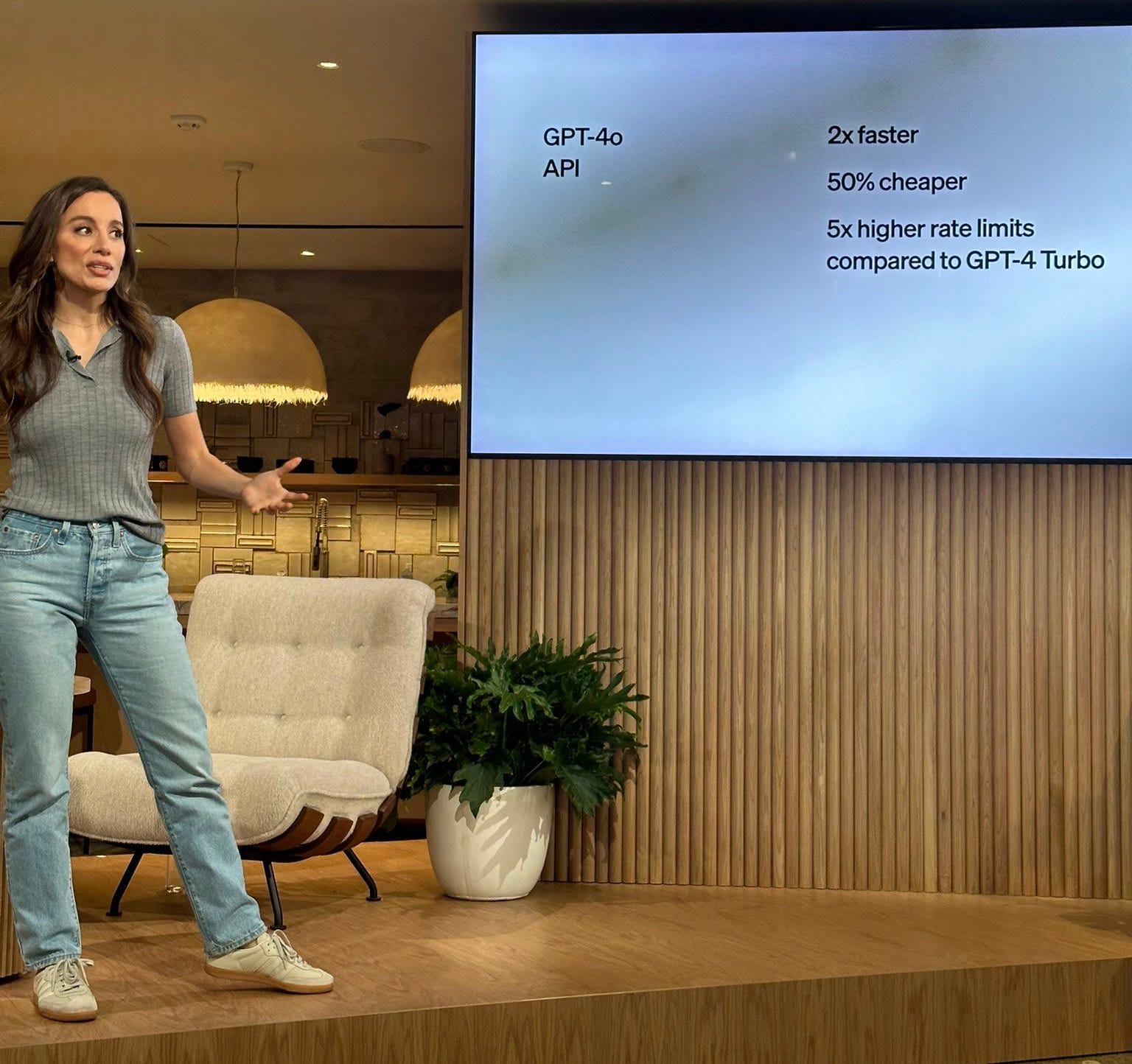 La directrice de la technologie d'OpenAI dévoile le nouveau modèle de ChatGPT devant le monde entier avec une présentation on ne peut plus minimaliste. Je répète : la start-up OpenAI présente un deck minimaliste au monde entier.